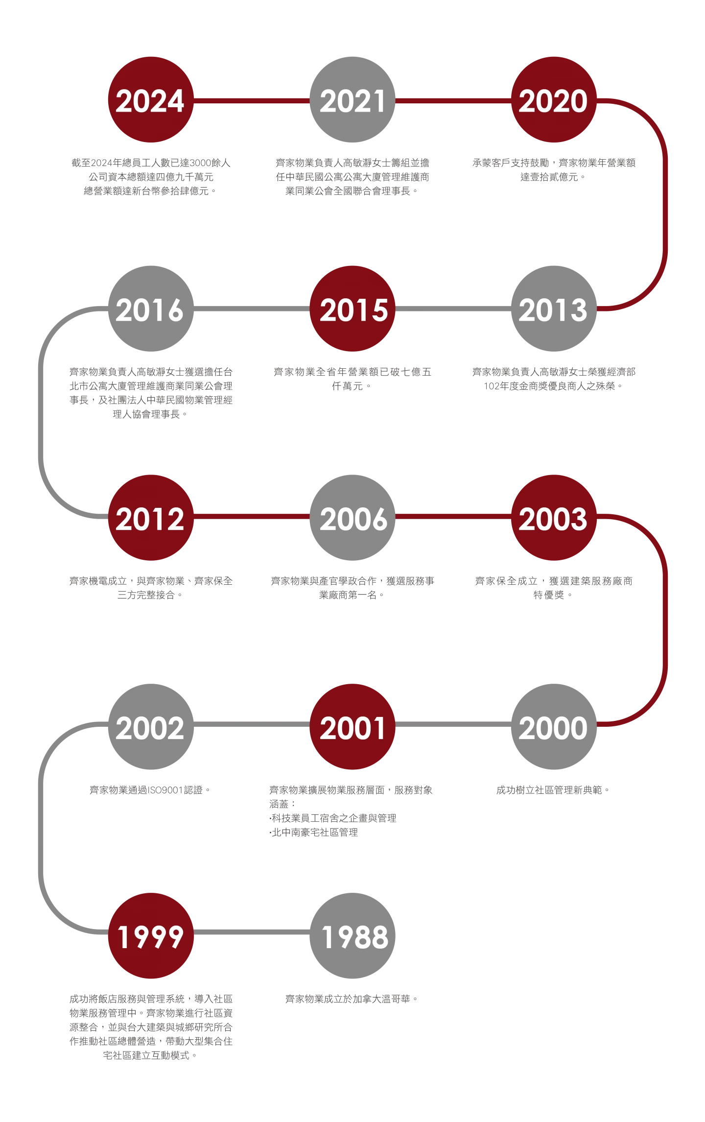 齊元智控並非橫空出世的新創公司,其根基深植於台灣物業管理界的重量級品牌——「齊家物業」之中。齊家物業的歷史可追溯至 1988 年,自成立以來,已深耕台灣社區管理超過 30 年,服務版圖橫跨大台北與桃園區域,是北台灣指標性的物業管理企業。